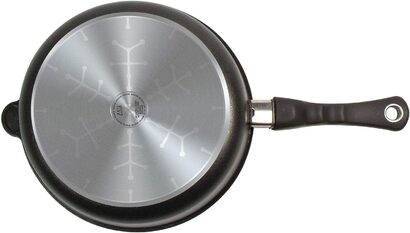 Диаметр 28 см и вместимость 1500 мл делают сковороду подходящей для приготовления пищи для семьи из 3-4 человек.