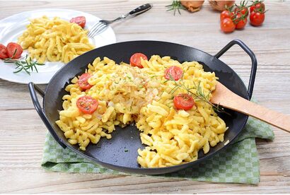 Сковорода изготовлена из чугуна в соответствии с DIN EN 10025-2. Керамическое покрытие обеспечивает антипригарные свойства и упрощает уход за сковородой.