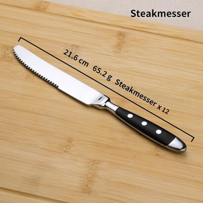 Каждый нож выполнен из высококачественной нержавеющей стали с зубчатыми лезвиями, которые легко и точно справляются с нарезкой мяса, обеспечивая комфорт во время еды. Кованая конструкция придает приборам необходимую тяжесть и баланс — ножи удобно лежат в руке и дарят приятные ощущения при использовании.