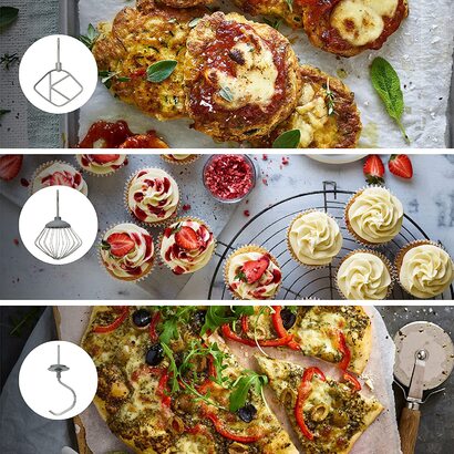 - МНОГОФУНКЦИОНАЛЬНЙ: Имеется 2 разема для 11 дополнительнх аксессуаров, таких как аксессуар для кондитерских изделий / набор для кондитерских изделий, с помощью которх в получите массу удовольствия от измельчения овощей, замешивания теста и т.д.