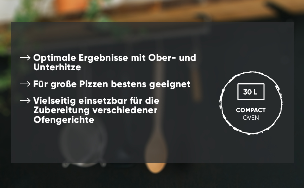 - Универсальная настольная духовка - вместимостью 20 литров, она может легко впекать пиццу и пирожне обчного размера, а также Картофель фри, жаркое, запеканки и булочки