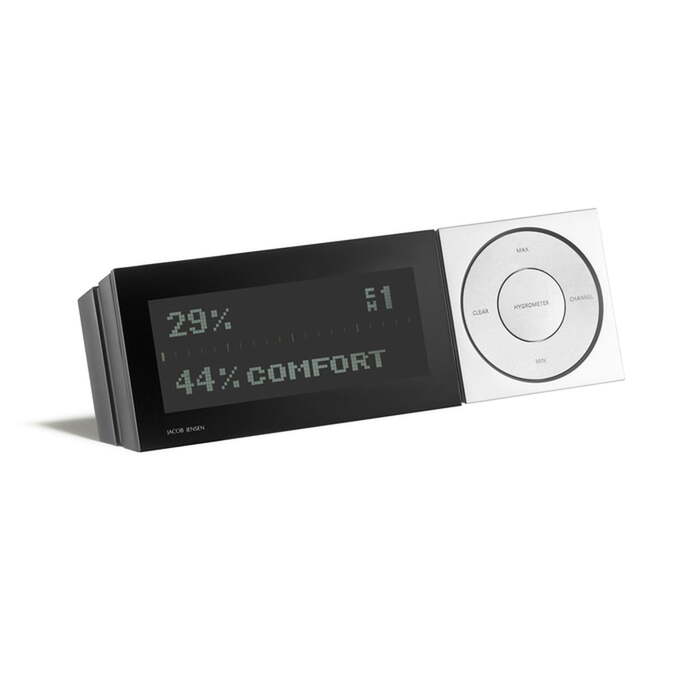 Метеостанция II от датского бренда Jacob Jensen проанализирует климат в вашем доме и определит погоду на улице в кратчайшие сроки. Это поможет вам правильно подбирать одежду для улицы и не мерзнуть дома. Метеостанция II также позволяет составлять и добавлять нужную метеостанцию в соответствии с пожеланиями и потребностями. Гигрометр измеряет влажность в помещении и сохраняет минимальные и максимальные значения. Он показывает относительную влажность в процентах и состояние климата в помещении: сухой, влажный или приятный. Чтобы снять показатели влажности, достаточно взглянуть на дисплей доступных устройств и посмотреть на полоски. Если требуется большая точность, столбцы можно преобразовать в точные числа. При необходимости этот режим также можно использовать по умолчанию.