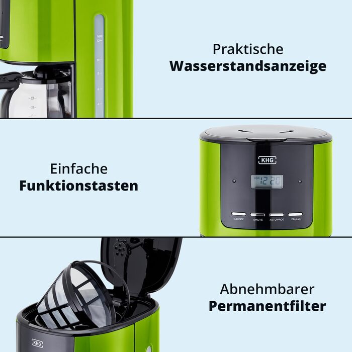 Кофеварка в наборе Green KHG позволяет приготовить кофе на ваш вкус. Благодаря мощности 700 Вт, кофеварка быстро и равномерно нагревает воду, обеспечивая насыщенный и ароматный кофе.