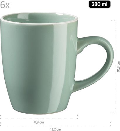 - тот современнй и удобнй набор посуд для 6 человек включает в себя 6 плоских обеденнх тарелок (Ø 27 см), 6 десертнх тарелок (Ø 21 см), 6 больших мисок с хлопьями или суповх мисок (Ø 18,5 см, емкость 800 мл) и 6 кофейнх кружек (380 мл) светло-зеленого цвета