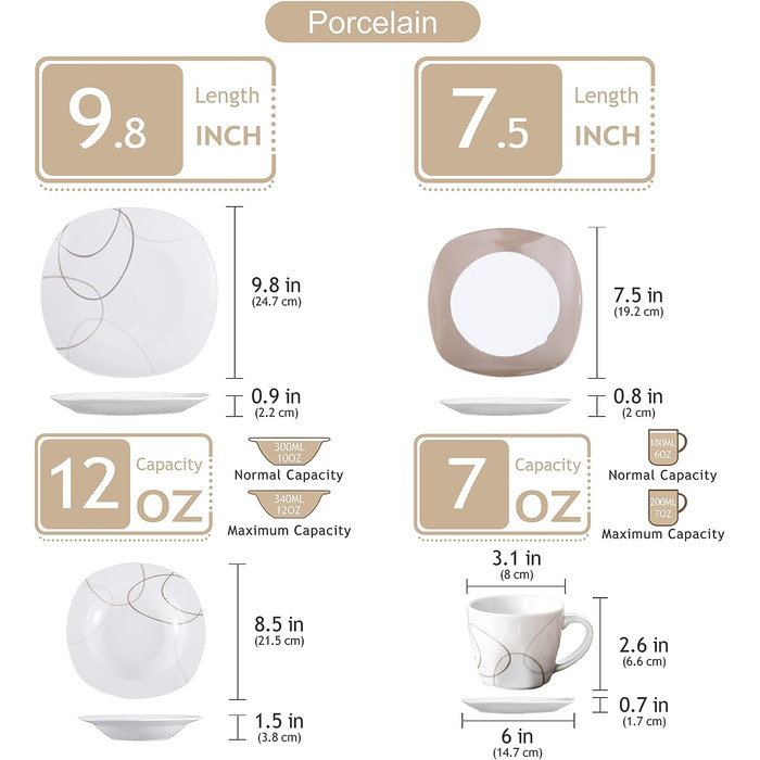 - ВЫСОКОЕ КАЧЕСТВО изготовления - Изготовленная из высококачественного фарфора, посуда надежная, ее можно мыть в посудомоечной машине, микроволновой печи и холодильнике.