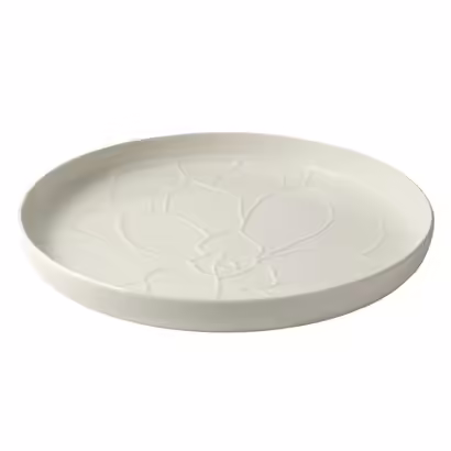 Поднос изготовлен из качественного фарфора. Этот материал отличается прочностью и долговечностью, а также позволяет создавать изделия с красивой текстурой и рельефом.