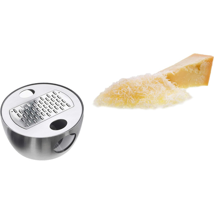 - Удобный обзор: Боковые отверстия в корпусе из нержавеющей стали позволяют легко видеть количество уже натертого сыра или овощей.