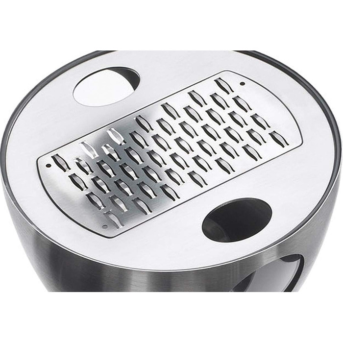 - Боковые отверстия в контейнере из нержавеющей стали обеспечивают обзор уже натертого количества