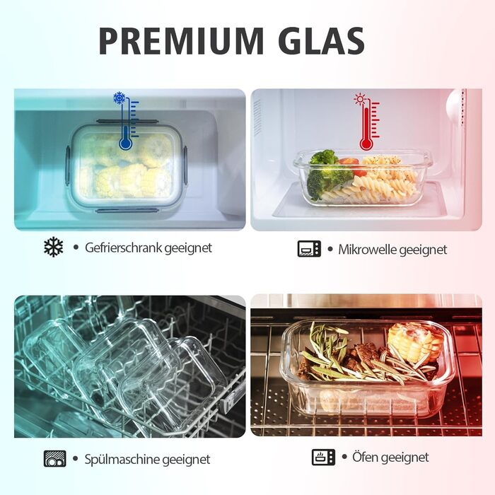 - Универсальность: Стеклянные основания можно использовать в посудомоечной машине, микроволновой печи, духовке и морозильной камере (без крышки). Температурный диапазон от -40°C до 400°C позволяет использовать их для самых разных целей.