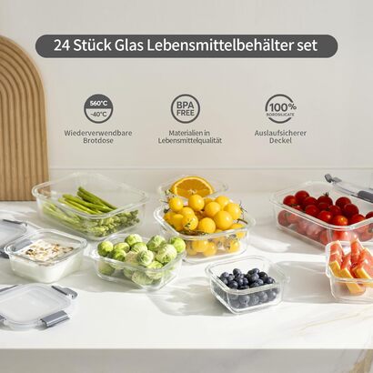 - БЕЗ ЗАГРЯЗНЯЮЩИХ ВЕЩЕСТВ - Упаковка содержит 24 штуки (12 контейнеров и 12 крышек) изготовлена из высокопрочного боросиликатного стекла с крышкой из пищевого полипропилена (100 без бисфенола А) - протестирована на LFGB.