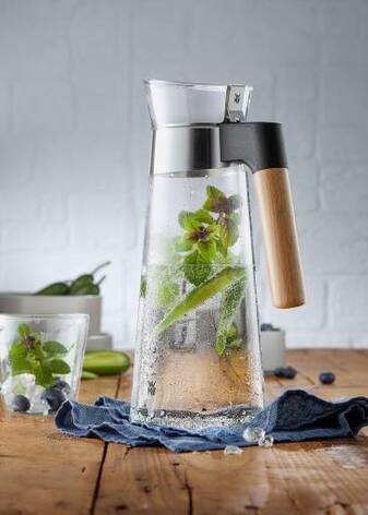 Графин Kineo от WMF идеально подходит для подачи воды, соков, лимонадов, коктейлей и других напитков с добавлением льда и фруктов.