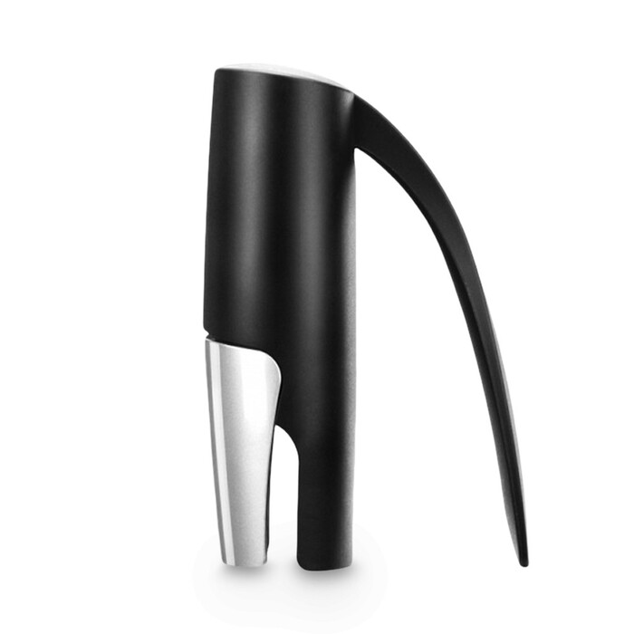 Штопор оснащен специальным рычагом и резиновыми вставками, которые обеспечивают точное попадание в центр пробки и предотвращают скольжение во время использования.