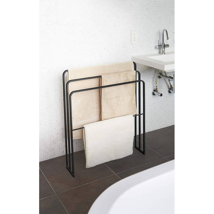 Эта полотенцесушитель от известного японского бренда YAMAZAKI станет прекрасным дополнением к интерьеру вашей ванной комнаты, добавляя нотку изысканности и порядка. Черный цвет и минималистичный дизайн гармонично впишутся в любой стиль, от классики до модерна.